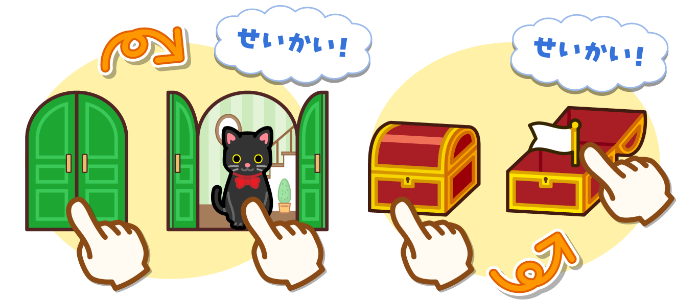 扉を開けたり、宝箱を開けたり、画面のあちこちをタップして探してみてね。