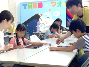 「はじめてのロボットプログラミング」は、ワオっちのアプリとちいさなロボットをつかってプログラムであそぶプログラミング教室。